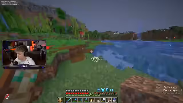 02:28:23Der Streamer erkundet die Welt und zeigt seinem Mitspieler seine Basis, die er als wunderschön beschreibt. Dazu gehören ein Schlafzimmer, eine Musikterrasse und ein Bereich mit Sonnenuntergang. Es werden Tipps zum Fangen von Tridenten-Zombies gegeben, die bevorzugt nachts an Flüssen spawnen. Es gibt auch eine Anspielung auf Paul Frege, der von Drowned getötet wurde.