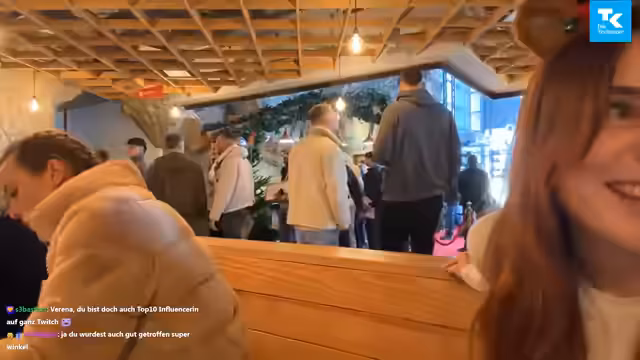 02:06:21Nach dem erfolgreichen Check-in (unter Vorlage eines Personalausweis-Fotos auf dem Handy) zeigt Verena die Warteschlange und den Andrang. Sie trifft auf andere Content Creator wie Kanchi mit Kameramann und Fritz Meinicke, dessen jugendliches Aussehen im Vergleich zur Kamera sie überrascht. Die Interaktionen sind locker und geprägt von gegenseitigen Komplimenten. Verena plant zudem ein interaktives Spiel mit dem Chat, bei dem Zuschauer anwesende Influencer erraten sollen.