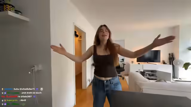 00:08:59Vor dem Aufbruch in die Stadt nutzt Verena die Zeit, um sich fertig zu machen. Sie putzt sich die Zähne, ordnet ihre Haare und schminkt sich. Dabei spricht sie mit dem Chat über ihre aktuellen Gedanken zum Aussehen und gibt zu, dass sie in letzter Zeit etwas abgenommen hat und sich besser fühlt. Sie packt zudem eine Tasche mit Utensilien für den Ausflug und eine Action-Cam für den Stream vor.