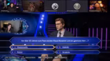01:50:03Nachdem die technischen Hürden genommen sind, startet das Quiz 'Wer wird Millionär?' mit einer Million Euro als potenziellem Gewinn. Die Teilnehmer beantworten eine Reihe von Fragen, die von einfach bis sehr anspruchsvoll reichen. Sie nutzen verschiedene Joker, wie den Telefon- und den 50-50-Joker, stoßen aber schnell an ihre Wissensgrenzen. Bei der 16.000-Euro-Frage über den Farbton 'Charmois' entscheiden sie sich nach einer langen und unsicheren Beratung für eine falsche Antwort und fallen auf 200 Euro zurück.