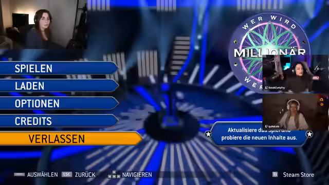 00:02:42Der Stream beginnt mit persönlichen Updates wie einem neuen Haarschnitt und gefärbten Augenbrauen. Die Streamerin kündigt ein technisch ambitioniertes Hauptevent an: Das Spiel 'Wer wird Millionär?' geplant als interaktives Format, bei dem bei jeder falsch beantworteten Frage ein anderer Streamer in die Runde hinzukommt. Das spontan geplante Event soll gemeinsam mit technisch vorbereiteten Streamern umgesetzt werden, die jedoch noch informiert werden müssen. Der Kauf des Spiels für 30 Euro bei Steam wird erwähnt.