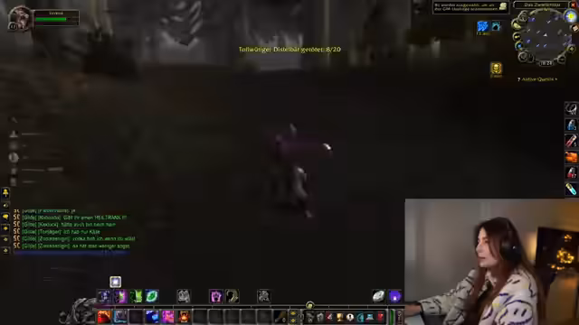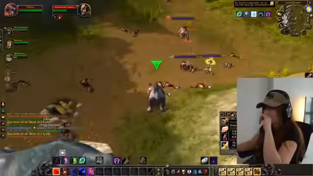 01:39:00Die Streamerin schließt sich einer Gruppe in Loch Modan an, bestehend aus Niki und anderen Spielern, um gemeinsam zu leveln und Quests zu bewältigen. Die Zusammenarbeit gestaltet sich zunächst problematisch, als ein technisches Problem mit dem Proximity-Chat auftritt, bei dem die Streamerin alle hört, aber selbst niemanden verstehen kann. Nach der Lösung des Problems konzentrieren sie sich auf die 'Schmutzige Pfoten'-Quest. Während sie die erforderlichen Ratten und Eber jagen, stellt sie fest, dass das Töten von Gegnern mehr Erfahrungspunkte bringt als das Erledigen von Questen und freut sich auf das gemeinsame Vorgehen mit der Gruppe.