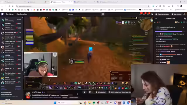00:42:30Die Streamerin reflektiert ihre Gameplay-Entscheidungen, wobei sie es ablehnt, zufällige Tipps von Zuschauern anzunehmen, um ihren Spielspaß zu wahren. Sie erklärt die Besonderheiten des Hardcore-Modus in World of Warcraft, in dem der Tod einen vollständigen Neustart bedeutet, was zu unterschiedlichen Leveln der Spielern führt. Parallel dazu eröffnet sie persönliche Einblicke, wie ihre unzureichende Nachtruhe, die ihr Aussehen beeinflusst, und unterhält sich über alltägliche Themen wie die Hürden einer spontanen Beziehung als Elternteil. Das Gameplay wird durch die Ankunft neuer Spieler, wie 'Leon', und das Angebot zur Gruppenbildung in Loch Modan unterbrochen.
