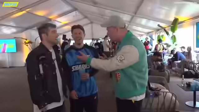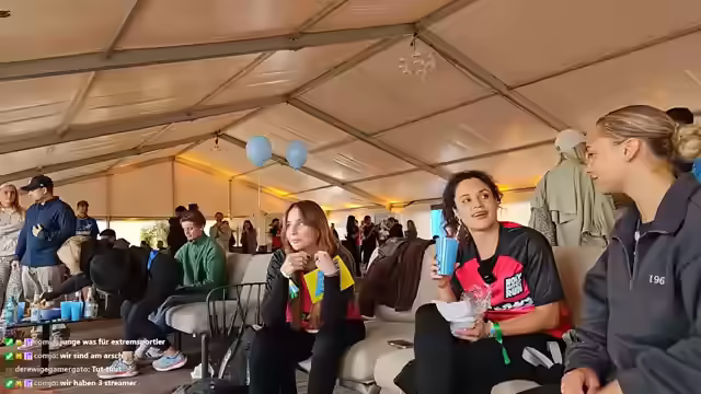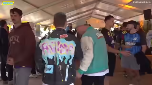 02:51:40Ein Running Gag namens 'Rahmen', entstanden aus einer Verwechslung mit 'Armen' und 'Ramen', wird thematisiert. Der Streamer steht unter dem Druck, ein entsprechendes Produkt zu entwickeln. Designs sind bereits in Arbeit und von der Mutter abgesegnet. Es wird überlegt, ob die Community das Produkt kaufen würde. Es gibt strahlende Augen bei Fans, die Armbänder überreichen. Rezo wird als nach Zuckerwatte riechend beschrieben. Es werden Fotos mit Fans gemacht, wobei betont wird, dass Trinken auch Sport ist. Die Freude und Rührung der Fans wird thematisiert, und es wird ein Vergleich zu früheren Fanerlebnissen mit Bands gezogen. Die Normalität und der sympathische Umgang mit den Fans werden hervorgehoben. Ein Buch wird entdeckt und eine Widmung angeboten. Es wird auf den bevorstehenden Start hingewiesen und die Vorbereitung der Handys für Fotos erwähnt. Es werden Fotos mit zitternden Fans gemacht, und die Göttlichkeit von Rezo wird betont.