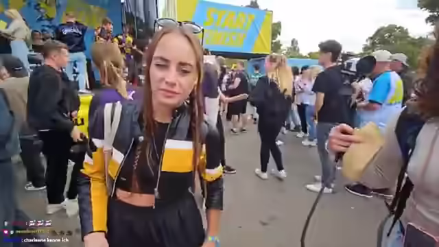 00:26:21Der Busfahrer Sebastian begrüßt die Teilnehmer und weist auf die Anschnallpflicht hin. Die Streamerin versucht, die Zuschauer zu animieren, während sie auf den Start warten. Es wird überlegt, einen kreativen Satz zu finden, den die Zuschauer spammen können, um das Team anzufeuern. Es wird überlegt, ob man sexy sein soll, um die Leute anzupassen. Es wird ein kurzer Dialog über die Community-Richtlinien geführt, nachdem die Streamerin kurzzeitig gesperrt wurde. Es wird überlegt, wer das Rennen gewinnen wird und es werden Wetten abgeschlossen. Die Streamerin befragt andere Teilnehmer nach ihren Teams und Fähigkeiten. Es wird überlegt, ob man die Kontrahenten runterschubsen darf. Es wird ein Gespräch über die Kameras und die Angst, sich vor so vielen Menschen zu blamieren, geführt. Der Eingang zur Location wird gezeigt und es wird überlegt, ob man noch ein Bus-Lied anstimmen soll.