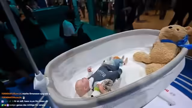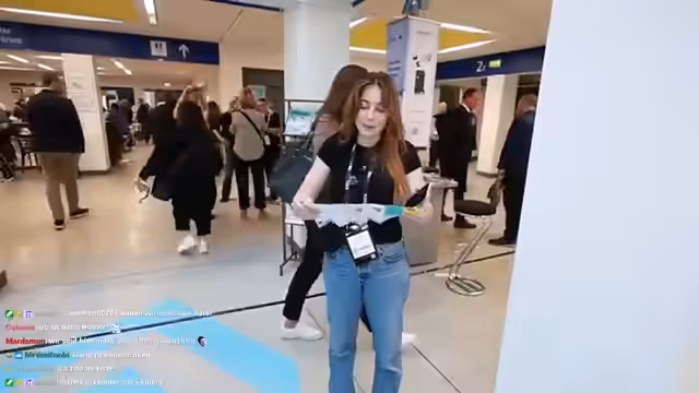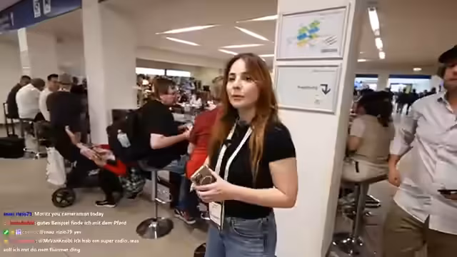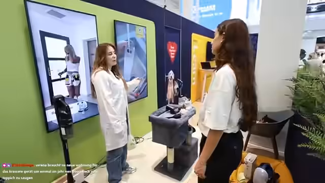 05:03:28Die Sprecherin und ihr Begleiter Moritz beschließen, sich die KI-Haushaltsgeräte genauer anzusehen. Nach einer kurzen Pause und einem Kaffee an einem Siemens-Stand machen sie sich auf den Weg in die entsprechenden Messehallen. Sie unterhalten sich mit Chat-Viewern und treffen auf einen Freund aus Fulda, was die persönliche Note des Streams zeigt.