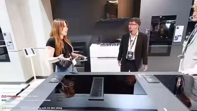 00:24:35Der AEG-Stand beeindruckt durch seine Größe und includes ein eigenes Restaurant, wo Besucher direkt Pizza probieren können. Die Streamerin erhält eine persönliche Führung durch die neuesten Technologien. Der Stand bietet verschiedene Produktpräsentationen und interaktive Erlebnisse, wie live Bügeln und Kochshows. Die Streamerin zeigt sich beeindruckt von der Präsentation und betont die Wichtigkeit von guter Haushaltsgeräte-Komfort.