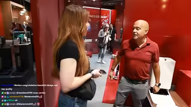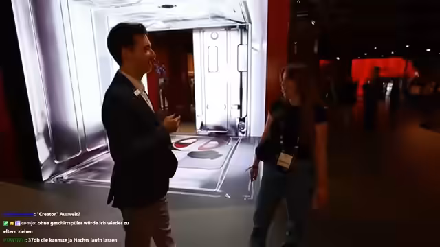 00:09:31Die Streamerin ist live bei der IFA in Berlin und will KI in Haushaltsgeräten erkunden. Der Fokus liegt auf TV, Haushaltsgeräten und innovativen Technologien. Zuerst wird der Samsung-Stand besucht, aber aufgrund fehlender Badges ist der Zugang nicht möglich. Daraufhin geht es zum AEG-Stand, der sich in einer eigenen Halle mit Restaurant befindet. Die Streamerin ist müde, aber hochmotiviert, die Neuheiten präsentieren zu lassen.