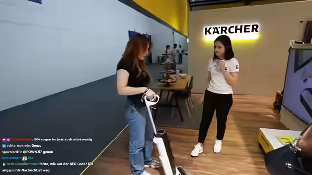 02:46:24Der Stream beginnt mit einer Demonstration verschiedener Reinigungsgeräte, insbesondere eines kombinierten Sauger- und Wischgeräts. Das Gerät hat separate Tanks für sauberes und Schmutzwasser und kann sowohl trocken als auch nass reinigen. Es hat eine Akkulaufzeit von etwa 40 Minuten, was von der Größe der Wohnung und der Reinigungsaufgaben abhängt. Besonders hervorgehoben wird die Eckenreinigungsfunktion, die dank Lichter auch schwer zugängliche Stellen effizient reinigt.