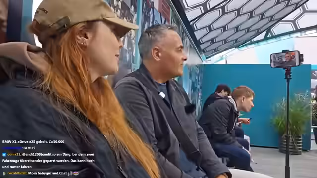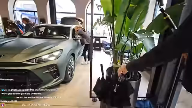 01:40:12Es wird ein Gewinnspiel für ein Holy-Paket angekündigt, bei dem die Zuschauer mit dem Ausrufezeichen Gewinnspiel teilnehmen können. Die Streamerin erzählt eine Anekdote über ein verstopftes Klo bei Lausi und dass sie gerne geholfen hätte. Sie ist geschockt über ein 80-Euro-Menü und fühlt sich wie beim Eisklettern. Sie möchte im nächsten Jahr bewusst mehr mit Frauen zusammenarbeiten, da sie das Gefühl hat, dass sie in der Szene unterrepräsentiert sind. Sie trifft jemanden und nimmt ein Hütchen mit. Es wird auf Strombock gewartet, der einen Parkplatz sucht. Die Streamerin ist kaputt von der Autofahrt und hätte noch ein bisschen schlafen können. Sie fragt die Zuschauer, was sie am ehesten sehen möchten und erwähnt, dass Porsche wieder einen mega krassen Stand hat. Sie ist gespannt auf den iX3 und das neue Konzept von BMW. Sie möchte am Samstag bei dem Hot Food Run mitmachen und danach in ein Wellnesshotel gehen. Sie weiß nicht, wo Strombock ist und dass Tesla abgesagt hat. Nino ist da und Strombock hat Probleme, einen Parkplatz zu finden. Strombock ist E-Auto-Experte und wird bei der Autosuche helfen.