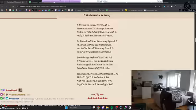 02:38:48 Flex hat im Discord den Text, also alles was E ist, ein Leerzeichen reingemacht. Könntest du, Flex, das wo ein Leerzeichen ist, mal ein Sternchen reinmachen, was auch diesem willkürlich ersetzen widerspricht, weil sonst würde dieses Verschlüsseln keinen Sinn ergeben. Ja, aber es kann ja sein, dass die E's dann wieder reinkommen, Kalko, dass die E's wieder reinkommen an der anderen Stelle, wo jetzt Leerzeichen sind. Hat das mal jemand versucht?