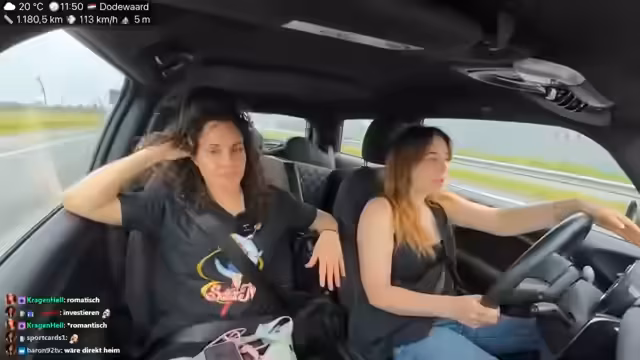 02:50:45Ein Raid von Moritz Schmidt mit 40 Zuschauern wird erwähnt. Die Streamerin befindet sich weiterhin auf dem Weg nach Rotterdam und erwähnt, dass sie sich nicht gut fühlt, nachdem sie zu viel gegessen hat. Sie äußert ihre Vorfreude auf das Event und hofft, sich in die Partnerparty einfinden zu können, auch wenn sie sehr müde ist.