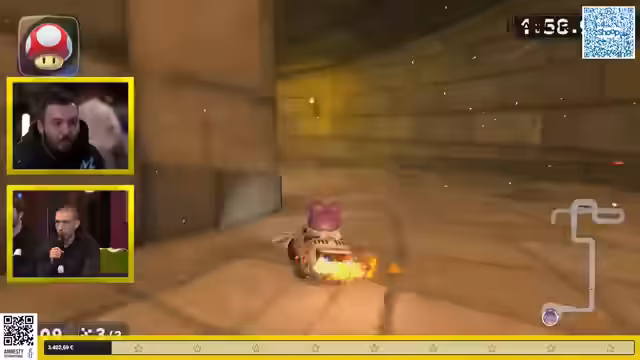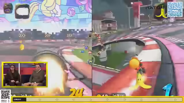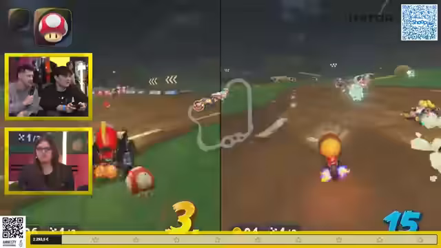 03:14:15Die Mario Kart-Rennen beginnen mit einer spannenden Wahl der Strecke. Nintend Toka wählt den „Shigai Bazaar“, eine Strecke aus Mario Kart 7, die für ihre Speedrun-Optimierung bekannt ist. Trotz des Versprechens, 50 Euro für jeden Sieg gegen den Streamer zu spenden, gelingt es Nintend Toka nicht, ihn zu besiegen. Es folgt ein weiteres Rennen mit einem Charakterwechsel und dem „Cheep-Cheep“ auf der „Kumu-Weide“. Auch hier kann der Streamer seine Dominanz behaupten, obwohl die Herausforderer gute Leistungen zeigen und die Rennen knapp sind. Die Blue Shells, die oft für unerwartete Wendungen sorgen, scheinen deaktiviert zu sein, was die Rennen fairer, aber auch weniger chaotisch macht. Die Zuschauer werden weiterhin ermutigt, für den guten Zweck zu spenden, da das Spendenziel von 2.300 Euro kurz vor der Erreichung steht.