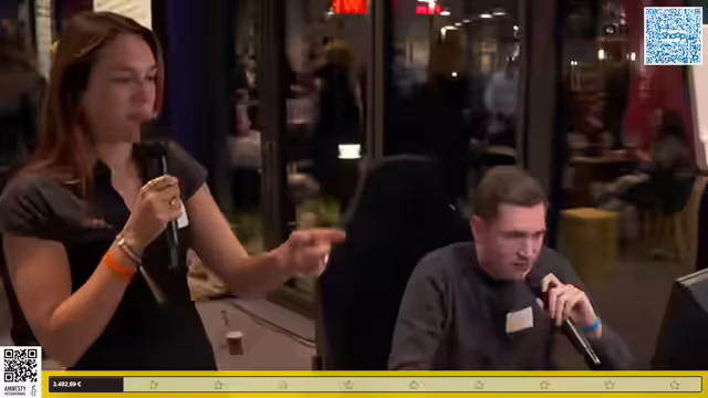 03:48:29Das Event geht weiter mit Mario Kart-Matches, bei denen Gäste aus dem Publikum gegen die Streamer antreten. Zuerst spielt Kanton, der als Anfängerin im Spiel überraschend gut abschneidet und den fünften Platz erreicht. Während des Spiels wird die Bedeutung der Spenden für Amnesty International hervorgehoben, und es wird bekannt gegeben, dass bereits über 2000 Euro gesammelt wurden. Kanton nutzt die Gelegenheit, um die Zuschauer erneut zum Spenden aufzurufen. Anschließend tritt Luara in einem weiteren Mario Kart-Duell an. Sie wählt ebenfalls die Biene als Charakter und das Mach-Bike, um den Profi zu kopieren. Die Matches sind geprägt von humorvollen Kommentaren und der Betonung des guten Zwecks. Die Spielerinnen zeigen trotz Konkurrenzgeist Fairness und Spaß am Spiel. Die Organisatoren sind zufrieden mit dem Verlauf und der Spendenbereitschaft und kündigen eine kurze Produktionspause an, in der die Zuschauer die Möglichkeit haben, sich mit Essen und Getränken zu versorgen, unter anderem mit einem Lieferando-Angebot, das 10 Euro Cashback verspricht. Die Pause dient auch dazu, die kommenden Segmente wie das Kochsegment, ein Panel und ein E-Sport Quiz vorzubereiten.