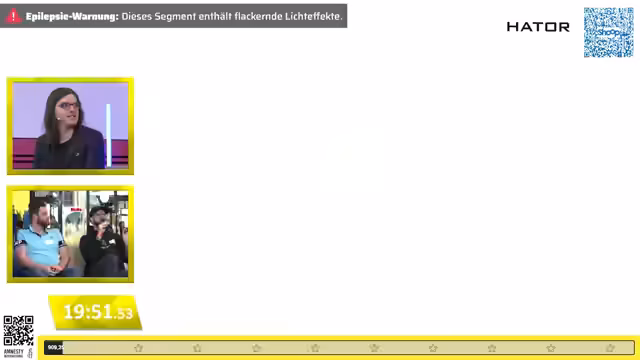 00:52:05Icy Vace war die nächste Teilnehmerin und erhielt ein spezielles Level mit einer Frontalansicht und einem rollenden Felsen, das von Aspect Customs gesponsert wurde. Sie musste die Side-Boxen in den Gängen zerstören, während der Felsen den Rest erledigte. Trotz der Herausforderung und der Notwendigkeit, Sprünge zu timen, meisterte sie das Level erfolgreich. Ihre Leistung wurde erneut mit einem Aufruf zu Spenden für Amnesty International verbunden. Der Moderator kündigte an, dass nach diesem Segment das Event nicht endet, sondern ein „Guess-to-Fry-Segment“ von MyDeals folgt. Danach wird er alle 42 Hollow Knight-Bosse am Stück besiegen, was als besonders hartes und einmaliges Ereignis angekündigt wurde. Im Anschluss an die Speedrun-Challenges wurde ein Video von Amnesty International gezeigt, das die Wichtigkeit von Weltoffenheit, Diversität und Menschenrechten betonte und die Arbeit der Organisation vorstellte. Es wurde hervorgehoben, dass viele Menschen sich aktiv beteiligen und dass es keine Rolle spielt, wie groß oder klein der Beitrag ist. Nach dem Video begann das gesponserte Segment von MyDeals, einer großen Schnäppchen-Plattform in Deutschland. Der Vertreter von MyDeals, Jan, alias Barney, erklärte das Prinzip der Plattform, bei der Deals von der Community eingestellt und bewertet werden. Für das Event wurde ein „Guess the Price Game“ vorbereitet, für das zwei Freiwillige aus dem Publikum gesucht wurden, die sich als Schnäppchenjäger bewiesen und um die Ehre kämpften.