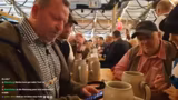 06:28:46Das Zelt ist voll und die Stimmung ist ausgelassen, auch wenn die Streamerin Verena zu diesem Zeitpunkt bereits Kopfschmerzen hat. Die Gruppe ist dynamisch unterwegs und betritt verschiedene Fahrgeschäfte. Dabei interagieren sie mit anderen Gästen, wie beispielsweise einem älteren Herrn, der sich humorvoll als 4500 Jahre alt ausgibt und behauptet, bei der Erbauung der Pyramiden geholfen zu haben. Der Fokus liegt auf dem gemeinsamen Erlebnis, Smalltalk und der typischen Oktoberfestatmosphäre mit viel Bier und Geselligkeit.