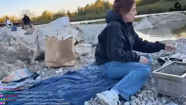 02:18:58Die Streamerin sitzt mit ihrem Hund Peggy in einem Park und beobachtet ein Pärchen, das sich arm in arm in der Sonne unterhält. Peggy scheint unzufrieden mit der Sitzplatzwahl zu sein, da sie sich nicht richtig hinlegen kann. Die Streamerin bemerkt, dass Peggy kritisch ist, was zum Streaming-Konzept dazugehört. Sie diskutiert mit den Chat-Teilnehmern über ihre Figur und bekommt täglich Nachrichten auf Instagram, in denen andere Menschen ihre Meinung zu ihrem äußeren Äußeren äußern.