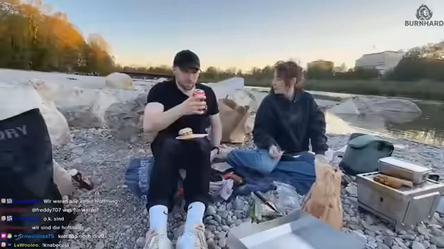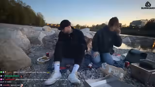 02:14:48Während einer der Streamer zurückfährt, um das Grillrost zu holen, nutzen die verbleibenden Zeit, um mit dem Chat zu interagieren und die Szene zu genießen. Sie unterhalten sich über verschiedene Themen und beobachten die Umgebung, einschließlich der vielen Schwäne und Gänse im Bereich. Die Atmosphäre ist trotz der unerwarteten Planänderung entspannt und humorvoll.