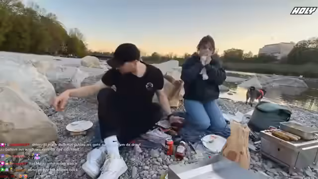 01:27:38Am Zielort angekommen, suchen sie nach einem geeigneten Parkplatz und überlegen, wo sie am besten grillen können. Sie finden einen schönen Spot mit Blick auf das Wasser. Während der Vorbereitungen zum Grillen stellt eine Streamerin fest, dass das wichtigste Grillrost zu Hause vergessen wurde, was zu einer Planänderung führt.