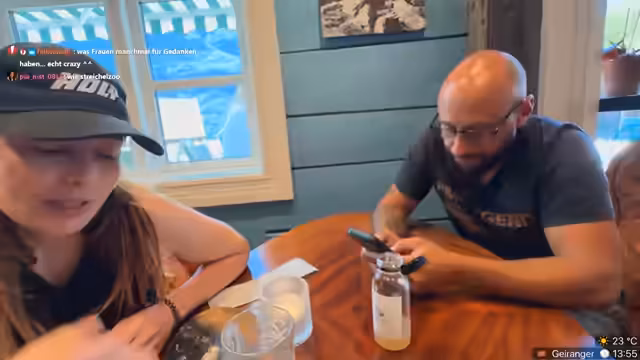06:05:12Während der Wartezeit auf die Fähre machen die Streamerin und ihre Begleiterin eine Essenspause in einem Café. Sie bestellen Focaccia und einen Eis Latte. Währenddessen sprechen sie über ihr Körperbild und die Themen Körperbehaarung und Rasieren. Die Streamerin äußert, dass sie sich im Überlebensmodus fühlt und sich keine Gedanken über das Rasieren machen möchte, da sie sich damit wohler fühlt. Sie diskutiert auch über die Hitze und den Sonnenbrand, den sie sich im Wasser geholt hat.