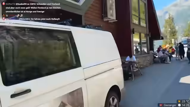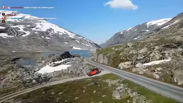 11:00:52Im Chat wird auf eine potenzielle Tsunami-Gefahr im Gairanger Fjord hingewiesen. Es wird gemeldet, dass ein Bergabgang erwartet wird, was eine Welle von bis zu 80 Metern auslösen könnte. Die Streamerin und ihr Begleiter nehmen die Information zur Kenntnis, bleiben aber entspannt, da die Warnung nicht unmittelbar aktuell ist und das Risiko seit Jahren bekannt ist. Sie betonen, dass die Region trotzdem bewohnt wird und Frühwarnsysteme bestehen.