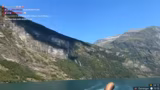 07:24:02Die Fähre startet schließlich und die Reise durch den Fjord beginnt. Der Streamer beschreibt die epische Kulisse der 'sieben Schwestern' Wasserfälle, die sie von unten und aus der Ferne bewundern. Sie reflektiert über die beeindruckende Aussicht und vergleicht sie mit der Aussicht von oben, die sie bereits zu Fuß erreicht hatte. Die Kosten von 100 Euro für die Fähre werden als hoch, aber lohnend für das Erlebnis eingestuft.