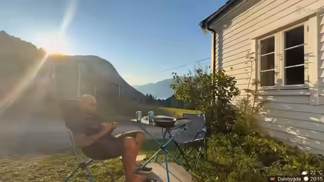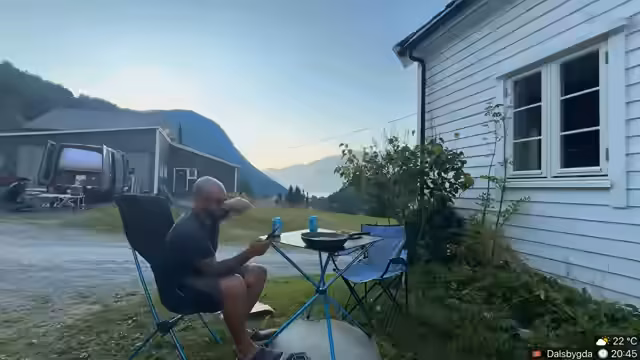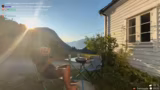 06:40:22Beim Anblick des norwegischen Fjords ist die Streamerin von der atemberaubenden Landschaft beeindruckt, auch wenn sie unter starkem Sonnenbrand und Mückenstichen leidet. Sie kritisiert scharf ein Hotel, das ihrer Meinung nach die historische Bootshaus-Siedlung optisch zerstört, und stellt sich vor, dass deutsche Touristen dagegen protestiert hätten. Die malerische Kulisse wird von Geräuschen der Natur und Beobachtungen über das Leben der früheren Bewohner begleitet.