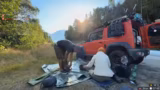 01:29:41Nach dem Eisbaden beschäftigt sich die Streamerin mit Warnleuchten am Auto. Sie erklärt, dass diese meist harmlos sind und weitergefahren werden kann. Anschließend muss Danny den Wagen starten, da die Streamerin vergessen hat, wie man fährt. Beim Anfahren im Gelände gibt es Schwierigkeiten mit der Kupplung und der Handbremse, was zu einer humorvollen, aber chaotischen Situation führt. Trotzdem gelingt es ihnen, den Hang zu bezwingen und weiterzufahren.