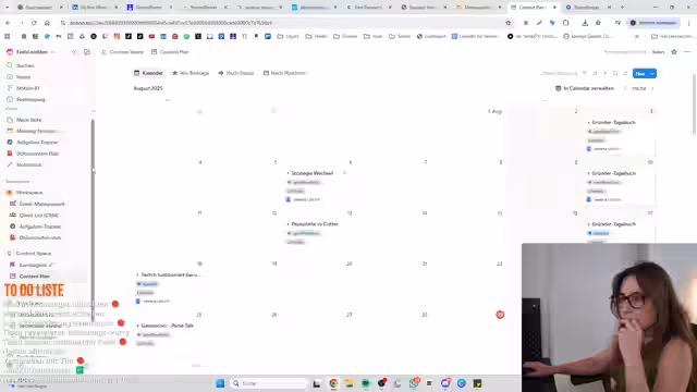 01:46:24Es wird versucht, einen Tisch für das Oktoberfest zu reservieren, aber die Online-Reservierungen sind bereits abgeschlossen. Eine E-Mail wird an die zuständige Stelle geschickt, um nach einer Möglichkeit für zwei Tische am Abend des 29.09. zu fragen. Es wird der Name FeelsLiveMan als cool empfunden und erwähnt, dass er an Twitch-Emotes angelehnt ist. Anschließend wird versucht, Notion einzurichten, was jedoch auf technische Schwierigkeiten stößt. Es gibt Probleme beim Einloggen und Hinzufügen von Personen, was dazu führt, dass sich selbst ausgesperrt wird. Es wird versucht, das Problem durch Löschen des Caches und Verwenden des Inkognito-Modus zu beheben. Es wird gefragt, wer Notion benutzt und wofür. Es wird ein Kampagnenkalender mit Placements erstellt. Es wird überlegt, Slack für die Kommunikation mit Eva zu nutzen, aber es wird bezweifelt, ob das zu zweit sinnvoll ist.