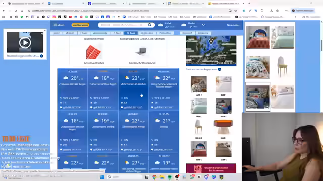 00:15:55Es wird die Planung für das kommende Wochenende besprochen. Trotz der unsicheren Wetterlage soll am Sonntag eine Schlauchboottour stattfinden. Für Samstag ist geplant, den Keller weiter zu entrümpeln und möglicherweise Baumarktbesuche zu unternehmen, um Dinge im Haushalt zu erledigen. Es wird auch überlegt, ob ein Ausflug zu Ikea unternommen werden soll, um Küchenboxen und andere Organisationshilfen zu kaufen. Claudia wird ein Bild vom Küchenschrank geschickt, um diesen besser zu sortieren. Lausi wurde bereits informiert, um nach der Schlauchboot-Tour abzuholen. Für Montag ist ein Coworking-Stream geplant, sofern es die körperliche Verfassung zulässt. Am Dienstag hat Peggy Geburtstag, und von Mittwoch bis Donnerstag findet ein Strategie-Meeting zum Start der GmbH mit Eva statt. Am Freitag geht es dann Richtung Berlin zur IFA.
