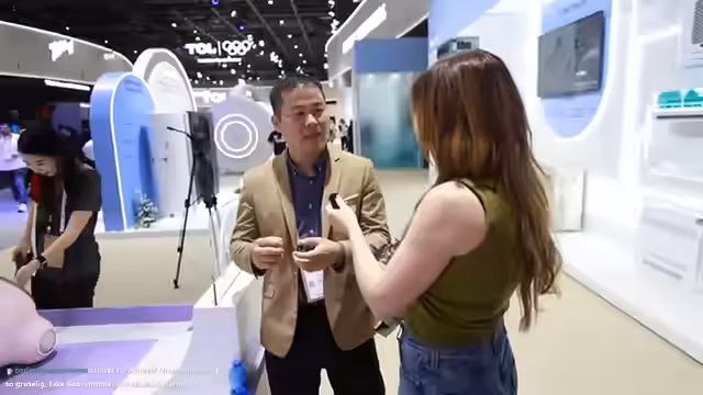 02:23:00Es wird festgestellt, dass man das Bild hoch und runter bewegen kann, ohne den Beamer zu bewegen. Wallpaper TV wird als unverständlich abgetan. Es werden Waschmaschinen mit Panda-Motiven entdeckt, die Begeisterung auslösen. Ein KI-System für Kinder wird vorgestellt, das als Überwachungssystem fungieren könnte. Riesenmonitore für Gaming und Cutter werden thematisiert. Ein Fernseher mit einem coolen Ständer wird entdeckt, der einen Red Dot Design Award gewonnen hat. 8K-Technologie wird angesprochen, aber infrage gestellt, ob sie schon relevant ist. Der Fokus verlagert sich auf die Suche nach Neuheiten und Empfehlungen aus dem Chat, insbesondere Roborock und Dreamer. Es wird festgestellt, dass es schwerfällt, Unterschiede zwischen Fernsehern zu erkennen. Pirato führt zu DJI, nachdem die TCL-Mitarbeiter passiert wurden. Es wird erwähnt, dass Samsung eine komplette Halle hat.