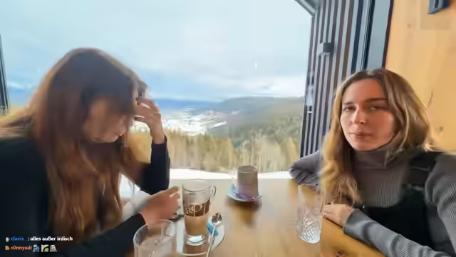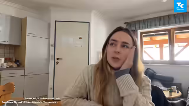 06:21:27Verena berichtet von körperlichen Beschwerden wie Nackenverspannungen und Schmerzen nach dem Bergaufstieg. Sie erwähnt unerwartete private Nachrichten, darunter eine Kontaktversuche ihrer Mutter nach fünf Jahren Funkstille, die nur wegen Geldfragen der Familienkasse kam. Dies überfordert sie emotional. Diskussionen über die Sauna-Vorbereitung folgen: Verena plant, sich umzuziehen und ruht sich zwischendurch aus. Sie äußert den Wunsch nach Entspannung und einem Glas Glühwein, wird aber von Peggy abgelenkt, die intensiv an ihrem Oberschenkel schnüffelt. Die Gruppe bespricht praktische Details wie das Mitbringen von Handtüchern und die Wahl der Badekleidung, wobei Verena humorvoll auf Kommentare zu ihrem Outfit reagiert.