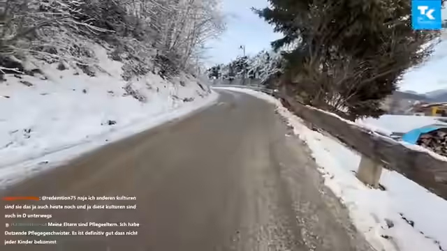 05:13:06Auf dem schneebedeckten Berg besteht hohe Sturzgefahr, besonders mit normalem Straßenschuhwerk. Die Streamerin beschreibt mehrere gefährliche Situationen, bei denen sie fast abstürzte, und drückt ihre Angst vor Verletzungen aus. Sie reflektiert über die Ironie, nach abenteuerlichen Reisen an einem einfachen Sturz zu sterben. Parallel dazu wird über die Suche nach einem Partner aus Salzburg geschmunzelt, der zu Peggy passt und die gemeinsamen Abenteuer unterstützt. Die schmale, vereiste Pfadlage erhöht das Verletzungsrisiko deutlich.
