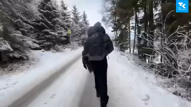 01:09:33Die Gruppe macht sich auf den Weg zum Wildtierpark durch die verschneite Winterlandschaft. Peggy, der Hund, wird warm angezogen. Verena reflektiert über die entspannende Wirkung der natürlichen Umgebung und äußert sich über die Herausforderungen, wenn Zuschauer sie auf ihr Äußeres reduzieren. Sie betont, dass sie zukünftig ihren Kreis auf fünf vertrauenswürdige Personen beschränken wird. Die Wanderung wird in gemütlichem Tempo fortgesetzt, während über Ausrüstung und die Schönheit der schneebedeckten Umgebung gesprochen wird.