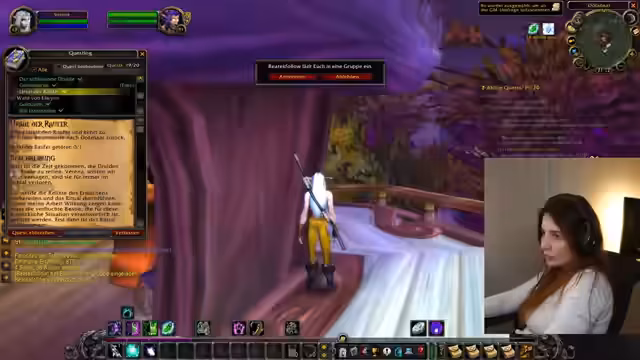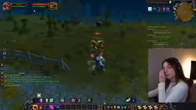 02:36:37Die Streamerin formt eine neue, engagierte Quest-Gruppe. Eines der Mitglieder, 'Gröbi', wird als ehemaliger Warcraft 3 Pro-Gamer vorgestellt, was für Begeisterung im Chat sorgt. Die Gruppe konzentriert sich auf die gemeinsame Jagd nach dem Elite-Boss 'Hogger'. Dabei zeigt sich, dass die Zusammenarbeit und das Heilen innerhalb der Gruppe gut funktioniert, auch wenn es für einige neue Spieler schwierig ist, den Boss zu erreichen und zu bekämpfen.