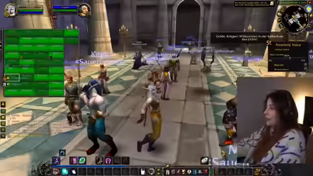 00:32:58Beim Versuch, ins Spiel einzusteigen, treten erhebliche technische Schwierigkeiten auf. Die Streamerin wird im Proximity-Chat von der Community ignoriert, was sie frustriert. Ein wichtiges Gildentreffen in Sturmwind steht kurz bevor, bei dem Themen wie Wappenrock-Wahlen, neue Regeln gegen externe Hilfe und die Organisation der Gilde besprochen werden. Die Streamerin bereitet die Community auf das verpflichtende Meeting vor.