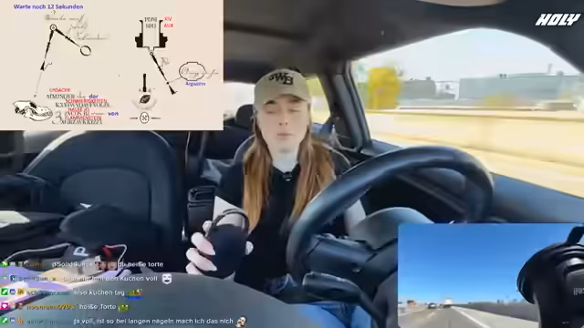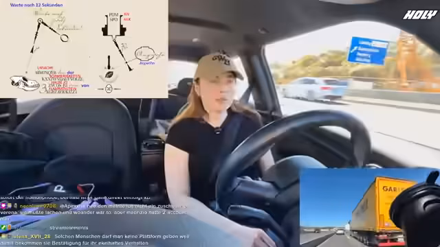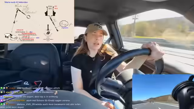 00:55:02Während der Fahrt treten technische Probleme mit der Kühlbox und der Streaming-Software auf, was die Streamerin frustriert. Gleichzeitig muss sie im Chat ihre Regeln durchsetzen, insbesondere die 'Ausrufezeichen-Regeln', die Großbuchstaben und Sonderzeichen verbieten. Sie droht einem User namens Bonus mit einem Time-out, da er mehrfach gegen die Regeln verstoßen hat und sich geweigert hat, diese zur Kenntnis zu nehmen.