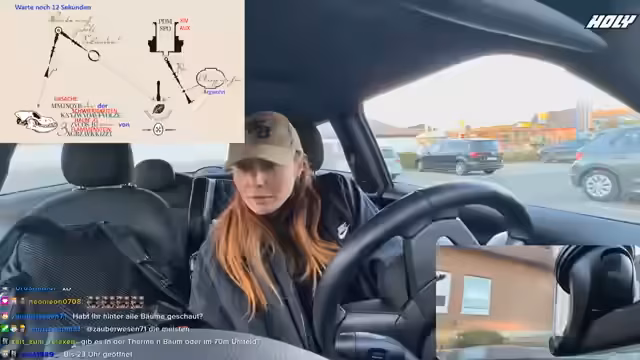 04:18:56Frustration über den fehlenden Erfolg weicht plötzlich einem akuten technischen Notfall aus. Die Powerbanks sind fast leer und das Auto kann sie nicht laden, da das Kabel falsch herum angeschlossen ist. Dies zwingt die Streamerin zu einer improvisierten Notlösung: Sie fährt mit ihrem Hund Peggy zu einem nahegelegenen McDonald's, um dort an einer Steckdose das Equipment laden zu können und den Stream aufrechterhalten zu können.