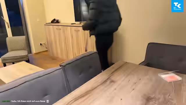 04:48:14Die Wohnung wird detailliert erkundet: Große Küche, Wohnzimmer, zwei Schlafzimmer (eines mit eigenem Bad für Moritz, eines mit Terrassenzugang für Verena und Peggy) sowie ein Gästezimmer. Verena lobt die moderne Einrichtung und den Wellness-Bereich mit Sauna. Sie erwähnt praktische Details wie WLAN und Stellplatz, aber auch humorvolle Momente wie Peggy, die markiert. Die Unterkunft wird als weit geräumiger als Verenas eigene 40m²-Wohnung beschrieben, mit perfekter Infrastruktur für den anstehenden Ski-Urlaub.