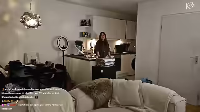 00:14:46Vor dem großen Aufräumaktion startet Verena mit einem simplen Kochsegment, um sich zu stärken. Es handelt sich um ein schnelles und unaufwendiges Gericht: Pellkartoffeln, Spinat und Rührei. Sie betont mehrfach, dass dies kein aufwändiger Kochstream wie bei anderen Creatorn ist, sondern schlichtes 'Überlebensessen'. Der Fokus liegt auf Ergebnis, nicht auf dem Prozess. Während des Kochens unterhält sie sich mit dem Chat über ihre Vorlieben bei Koro-Peanut-Butter-Cups und macht sich Gedanken über die Zukunft, darunter geplante IRL-Streams und Reisen im Februar.