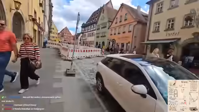 03:19:05Die Streamerin trifft in Rothenburg ob der Tauber ein und sucht nach einem Parkplatz. Es kommt zu technischen Problemen mit dem Chat und der Ausrüstung. Sie findet schließlich einen Parkplatz, muss sich aber um das Parkautomaten kümmern, was zu Schwierigkeiten führt. Schließlich beginnt sie die Suche nach dem ersten Hinweis, einem Turm mit einer Uhr, während die Zuschauer versuchen, sie per Chat zu navigieren.