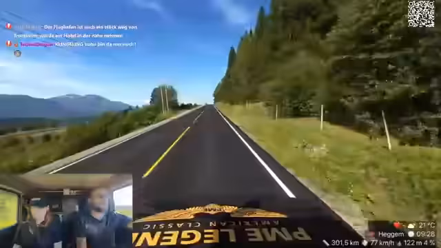 02:49:07Die Streamer planen ihre Weiterreise und erwägen zwischen der Autobahn und landschaftlicher Route. Sie entscheiden sich gegen die Autobahn, um mehr von der Natur zu sehen, was jedoch zu längeren Reisezeiten führt. Das Tagesziel ist Trondheim, aber der Flughafen liegt hinter der Stadt, was zusätzliche Logistik erfordert. Es gibt Diskussionen über mögliche Übernachtungsoptionen und die Vorzüge von Hotels in der Nähe des Hauptbahnhofs gegenüber teureren Optionen am Flughafen.