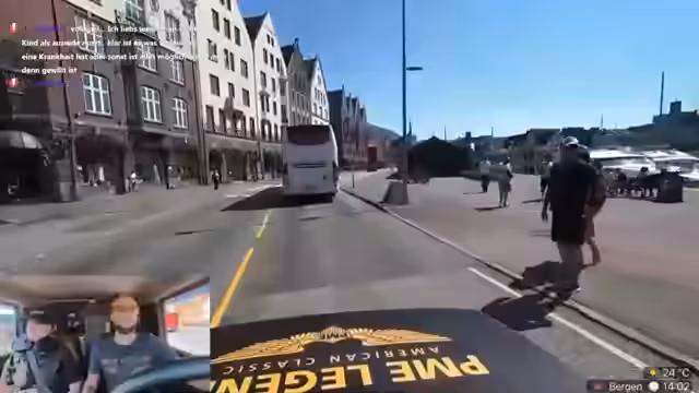 01:26:58Die Ankunft in Bergen markiert den Beginn des Stadtbesichtigung. Das Fahrzeug wird geparkt, wobei die Parkregelungen und -gebühren geklärt werden. Das erste Ziel ist ein Frühstückslokal namens 'Good Bread Floyen', das durch den Chat empfohlen wird. Bei der Durchquerung der Innenstadt fallen die historischen, farbenfrohen Häuser auf, die zu einer spontanen Fotosession und Bewunderung der Architektur führen. Während des Gehens wird die Stadt erkundet und die Umgebung wahrgenommen.