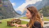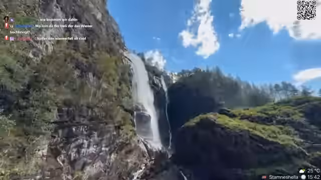 11:30:19Nach einer kurzen Panikmeldung über mögliche Ausweiskontrollen erreichen Verena und Danny einen beeindruckenden Wasserfall. Verena ruft die Zuschauer auf, sich das Naturschauspiel anzusehen und beschreibt die Gegend als 'crazy' und 'geil'. Sie macht sich Gedanken über das Urinieren an dem Ort und findet die Aussicht atemberaubend. Viele Zuschauer schauen zu und Verena teilt ihre Begeisterung für die norwegische Landschaft und die unberührte Natur.