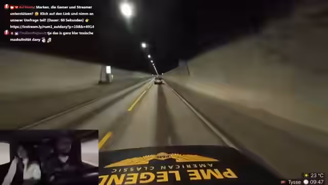 14:51:48Zum Ende des Streams gibt es erneut technische Schwierigkeiten, bei denen die Bildübertragung ausfällt und der Streamer die Verbindung nicht überprüfen kann. Währenddessen schläft Verena im Beifahrersitz. Der Streamer Danny zeigt den Innenraum des Autos, der umfunktioniert wurde, um auch als Schlafplatz zu dienen. Er erwähnt seine Verpackungskünste und die knappen Verhältnisse im Fahrzeug. Der Stream endet abrupt, nachdem die Streamerin von Verena eine Nachricht erhalten hat.
