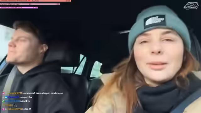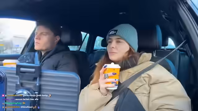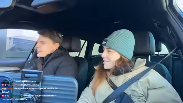 02:21:15Die Fahrt zum McDrive wird zu einer turbulenten Herausforderung. Beide Streamer verfahren versehentlich am Bestellterminal vorbei und stehen nun im Ausgabebereich, was zu einem peinlichen Missverständnis mit der Mitarbeiterin führt. Eine spontane Ausrede muss erfunden werden, um die Situation zu retten. Obwohl sie letztendlich doch noch ihre Tees bekommen, ist die Szene sehr unangenehm und führt zu humorvollen Reaktionen im Chat. Das gesteckte Follow-Ziel wird ebenfalls nicht erreicht, was die leichte Enttäuschung zeigt.