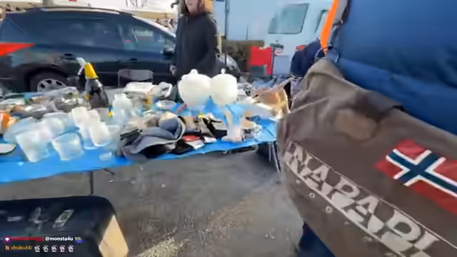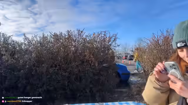 02:10:25Auf dem Weg zum zweiten Flohmarkt erinnert der Streamer daran, dass Verena zwei Stativhalter tragen muss. Sie diskutieren über die Kälte und die teilweise unübersichtliche Parksituation. Als die Streamerin eine Pause und einen Tee möchte, schlägt der Streamer spontan vor, einen McDonalds Drive-In aufzusuchen. Dort soll die Streamerin durch Follows für den Streamer werben, um einen Tee zu erhalten, was zur Diskussion über das Budget und die Erwartungen an den Content führt.