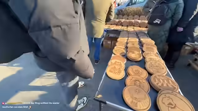 00:35:34Das Stream-Team interagiert mit verschiedenen Händlern und Flohmarktbesuchern. Sie befragen einen Standbesitzer über seine Quarkkäulchen und besichtigen Wurstangebote sowie einen Stand mit LEGO-ähnlichen Bauklötzen. Ein Kurzauftritt bei einem Händler namens Peter, der Leberbrust verkauft, wird erwähnt. Moritz zeigt verschiedene Flohmarktfunde und steht im ständigen Dialog mit dem Chat, der über die Preise und Artikel diskutiert und Tipps gibt.