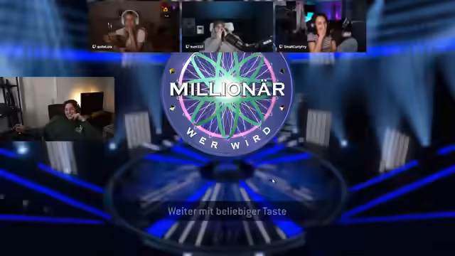 02:09:18Zur Auflockerung vor dem Spiel 'Wer wird Millionär' gibt es eine Vorstellungsrunde, in der sich die Teilnehmer vorstellen und Witze erzählen. Die Streamerin Verena eröffnet die Runde mit einem Witz über eine umfallende Kugel und spricht über ihre gemischten Gefühle bezüglich des Millionenprojekts. Kuni, ein ehemaliger Polizist und Fußballtrainer, erzählt von seinem Wechsel zu YouTube und seiner Vergangenheit bei einer Spezialeinheit. Kimmerly, eine Streamerin, präsentiert einen Anmachspruch anstelle eines Witzes und thematisiert humorvoll ihre sexuelle Orientierung. Lola, die bereits in vorherigen Streams dabei war, erklärt die Motivation, diesmal 'Macher' wie Kim einzuladen und äußert Zweifel an Kunis Fähigkeiten. Es wird erwähnt, dass Kuni sich mit Harry Potter und Star Wars auskennt, während Kim für Fußballfragen zuständig ist. Die Gruppe bereitet sich darauf vor, mit dem Spiel zu beginnen, während Verena kurz unterbricht, um eine Lieferung entgegenzunehmen.