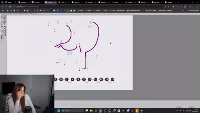 02:47:48Nachdem die sieben Lösungen erarbeitet und die zugehörigen Buchstaben identifiziert wurden, steht die letzte Herausforderung an: die Verbindung der Punkte auf einer Grafik. Die Streamerin beginnt, die Buchstaben in der ermittelten Reihenfolge zu verbinden, um das Osterei und die Koordinaten für die geplante Reise sichtbar zu machen. Der Abschluss des Rätsels steht bevor.